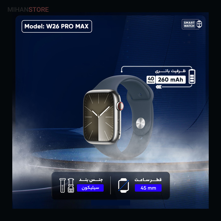 ساعت هوشمند W26-ProMax Special، محصولی است که با ترکیب ویژگی‌های پیشرفته و طراحی جذاب، می‌تواند تجربه‌ای متفاوت را برای شما رقم بزند. این ساعت هوشمند، نه تنها قابلیت‌های متنوعی را در اختیار شما قرار می‌دهد، بلکه با ظاهری زیبا و شیک، به عنوان یک اکسسوری مد و لباس نیز می‌تواند مورد استفاده قرار گیرد. همچنین، هدفون بلوتوثی همراه این ساعت هوشمند، تجربه صوتی بی‌نظیری را به شما ارائه می‌دهد. با قابلیت‌های پیشرفته و تکنولوژی روز، می‌توانید از موسیقی، ویدئو و سایر محتواهای صوتی لذت ببرید.